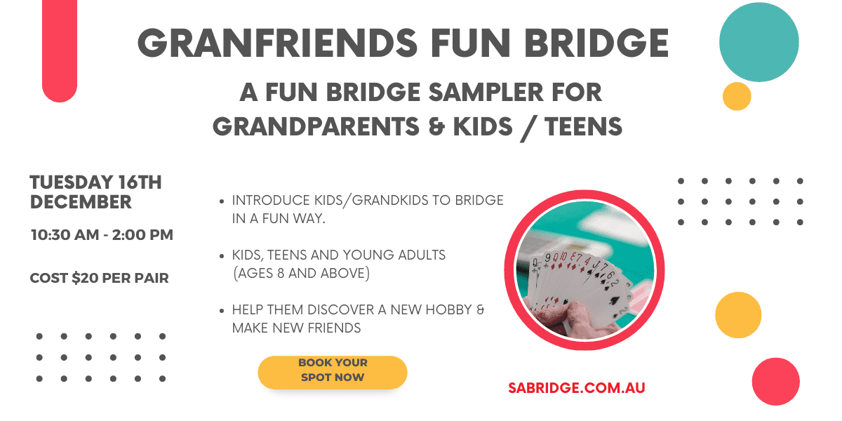 This social bridge event is the perfect opportunity to introduce children and teenagers, ages 8 and above, to the joys of bridge in a fun and social way.